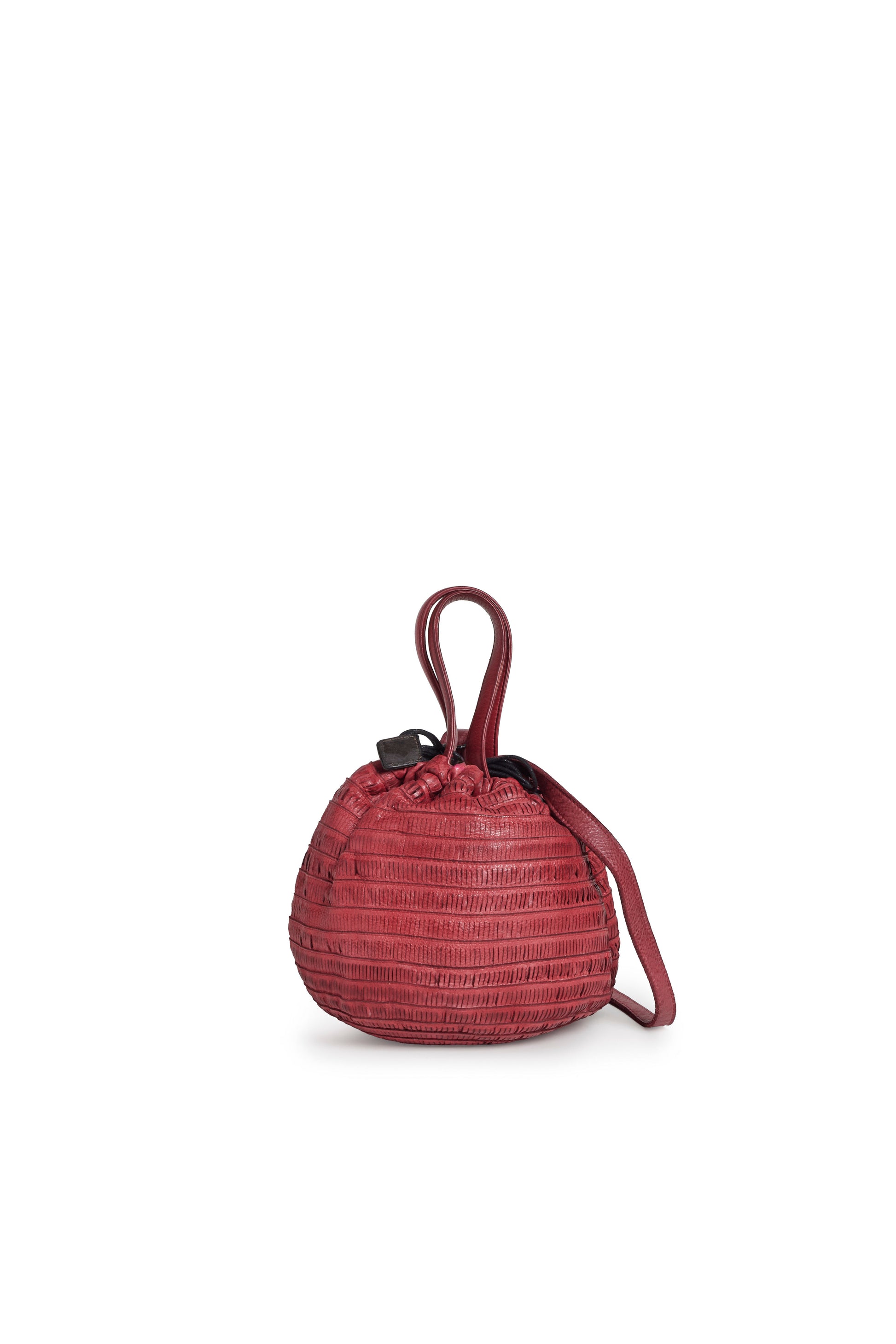 double handle, drawstring leather closure, interior zipper pocket, adjustable and detachable strap;
